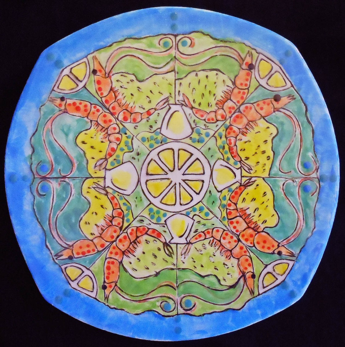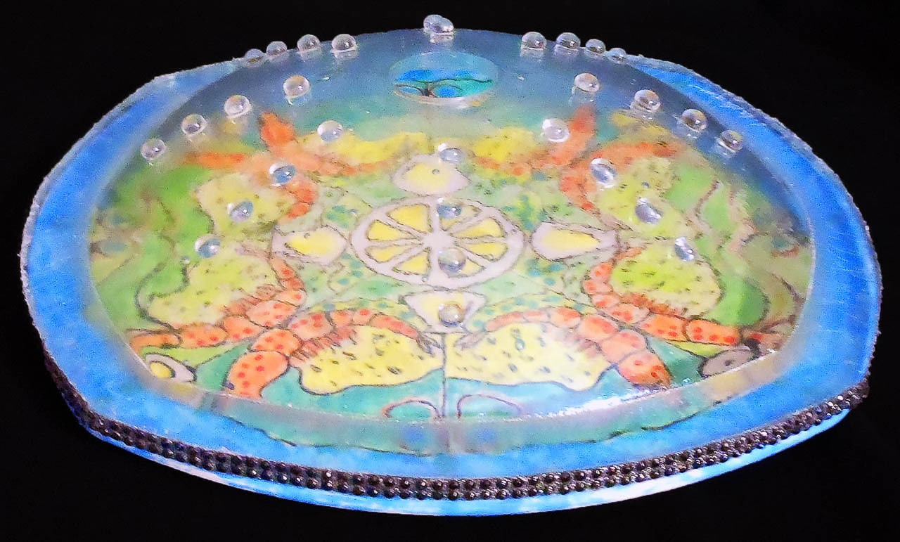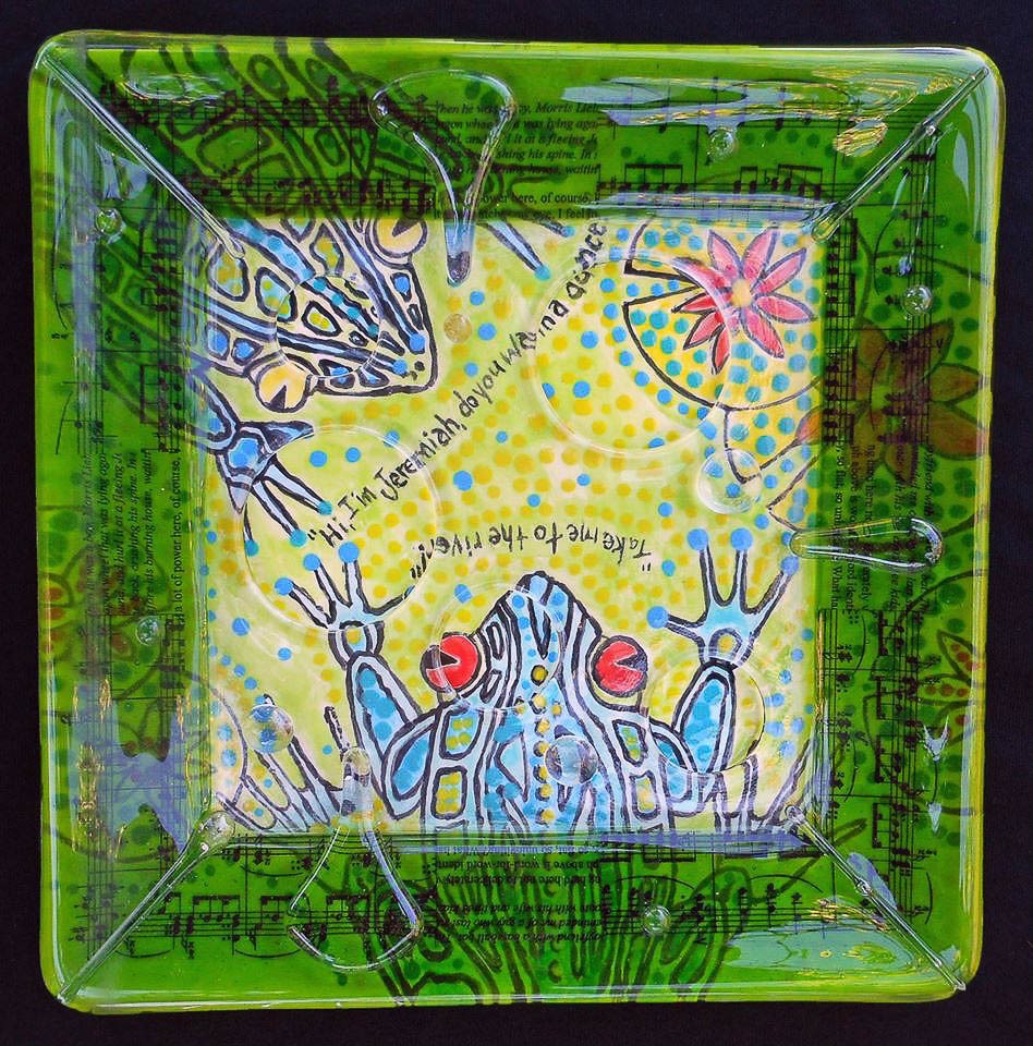 Custom hand-painted BookPlate, fused glass overlay plate. Paso Robles Library Foundation. Private collection.